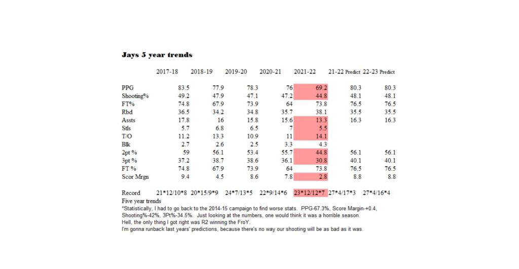 This coming 2023-24 season, our Jays continue to have the talent, consistency, drive, heart, will-to-win, and determination to again contend for the NCAA Championship. The Jays have sufficient depth to weather unforeseen injuries. They have a great mix of youth, transfers, and veterans. They know that their system allows them to compete and win against anyone. Creighton also plays good defense. They will meet the majority of their intermediate milestones, achieve their major milestones, and make a big run again in the NCAA Dance in March 2024.